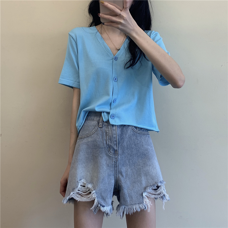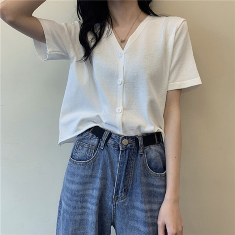 5分鐘前氣質v領薄款打底針織衫,2020夏季新款女裝短款開衫上衣 - 【買一送三】任選4件,僅需NT$1198