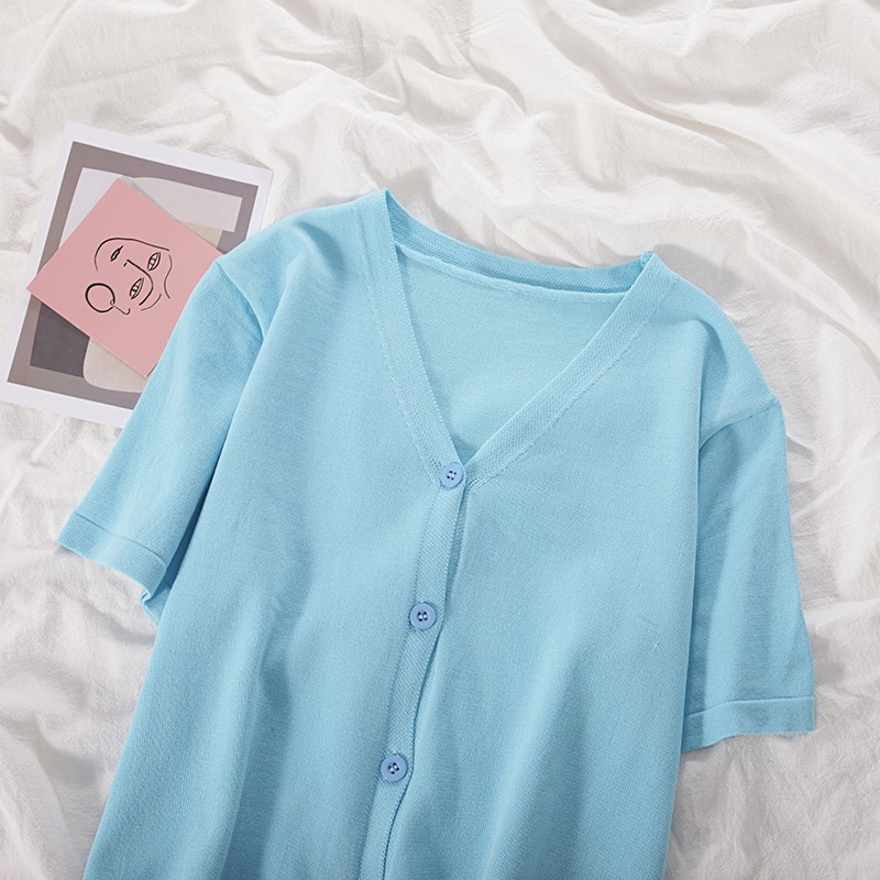 半小時前氣質v領薄款打底針織衫,2020夏季新款女裝短款開衫上衣 - 【買一送二】任選3件,僅需NT$1098